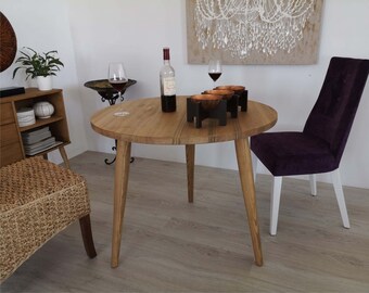 Runder Tisch Nach Mass Aus Eiche Massiv Ausziehbar Per Mittelauszug Mit Integrierter Klappeinlage Ausfuhrung Auf Holzsau Kuche Tisch Runder Kuchentisch Tisch